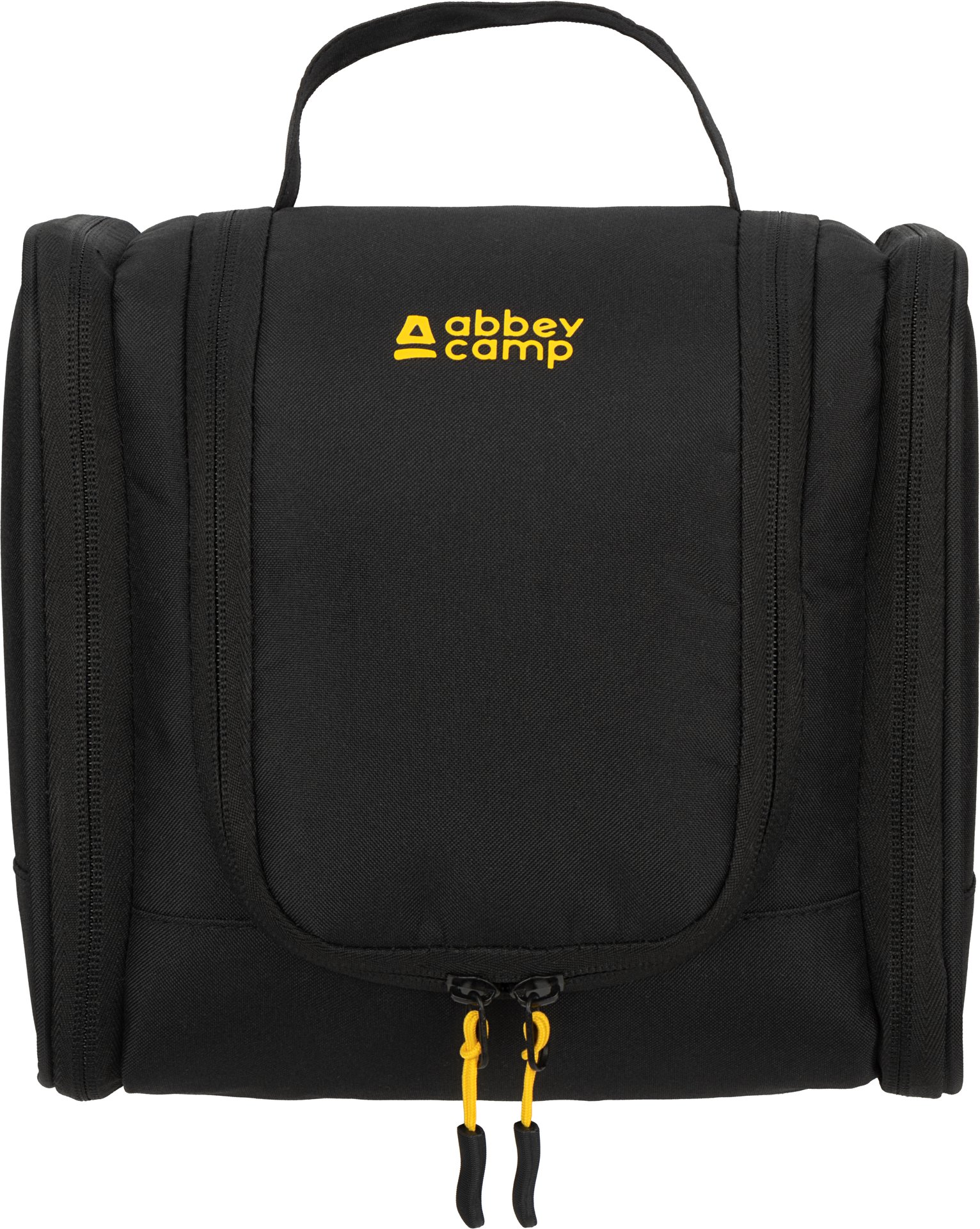 Abbey Camps sustainable toiletbag is made of recycled material and it offers enough space for all essential toiletries.This toiletries satchel is an ideal bag for travelling or a weekend away, but also for everyday use due to its compact yet practical design. The Abbey Camp Beijing toiletries bag has a spacious main compartment where you can store the larger items and two side pockets for the small things. The bag also has a handy hanging hook so that you don’t have to put it on a wet surface during use and so that it doesn’t take up unnecessary space when stored. If there is still a risk of the bag getting wet, then the water-repellent material of the toiletry bag ensures that the inside always stays dry.