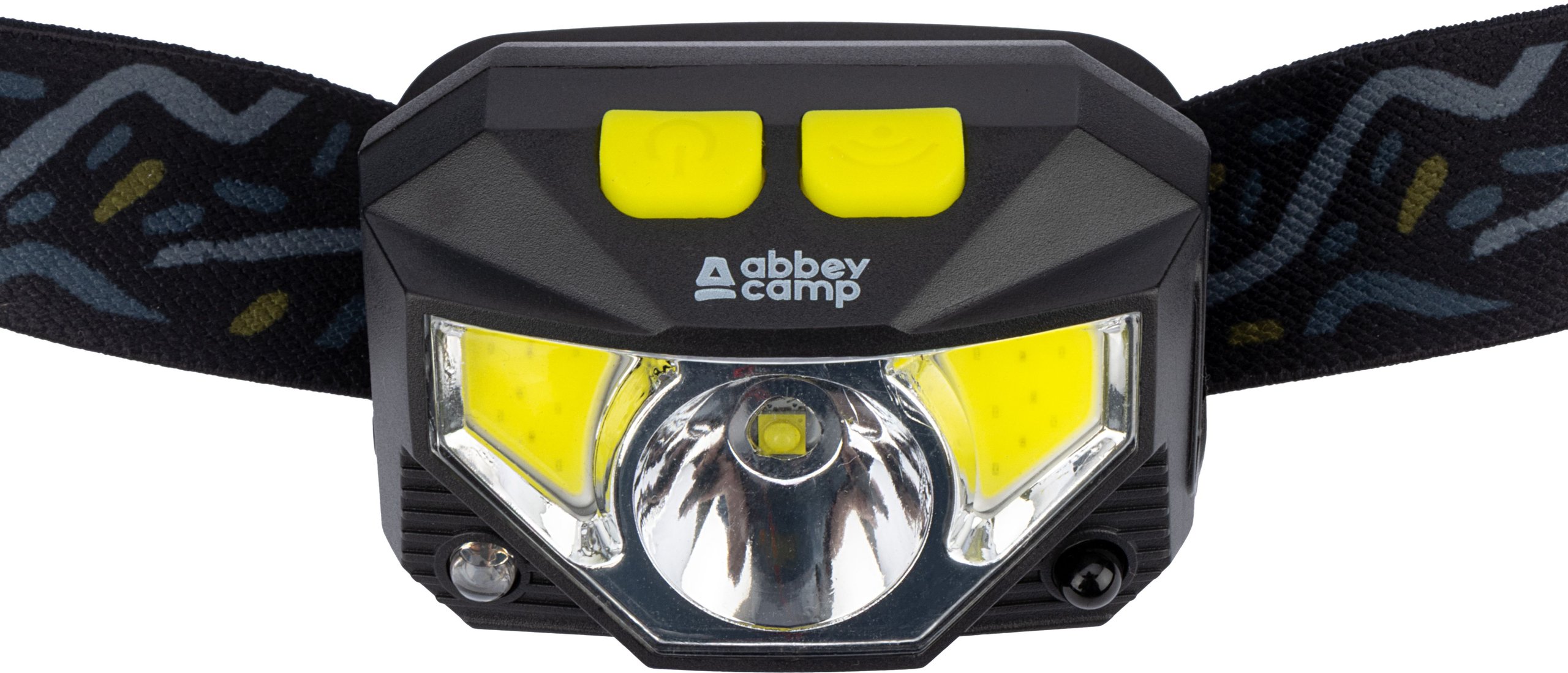 Whether you go for a walk, bike ride or hike early in the morning or need a good and bright light while setting up your tent. The Outdoor View Tiltable Headlamp LED with motion sensor from Abbey Camp ensures that you have good lighting hands-free. The lamp has a tiltable LED lamp on the front of the reflective headband, so you can easily adjust the direction of the light for a good sight (up to an ange of 90 degrees). Besides the normal on/off switch, the lamp has a motion sensor, so you can easily and quickly switch the headlamp on and off with just one movement. Very handy when your hands are dirty. This weatherproof outdoor lamp (IPX3) has an extra sturdy ABS frame, has a comfortable adjustable elastic headband and is lightweight (80g). Perfect to take with you while traveling or fishing. You can set the lamp by means of the button on the top and choose from several modes. The LED lamp exists of 1 XPE and 2 COB LEDs and can flash at different speeds or light up continuously. It gives red and/or white light. The red light ensures that your eyes do not have to get used to the dark everytime you use the light and that you do not blind others as quickly.The super bright head lamp is rechargeable by means of the built-in rechargeable battery with USB-C connection and lasts 3.5 hours in the brightest mode and up to 25 hours in the lower light mode.