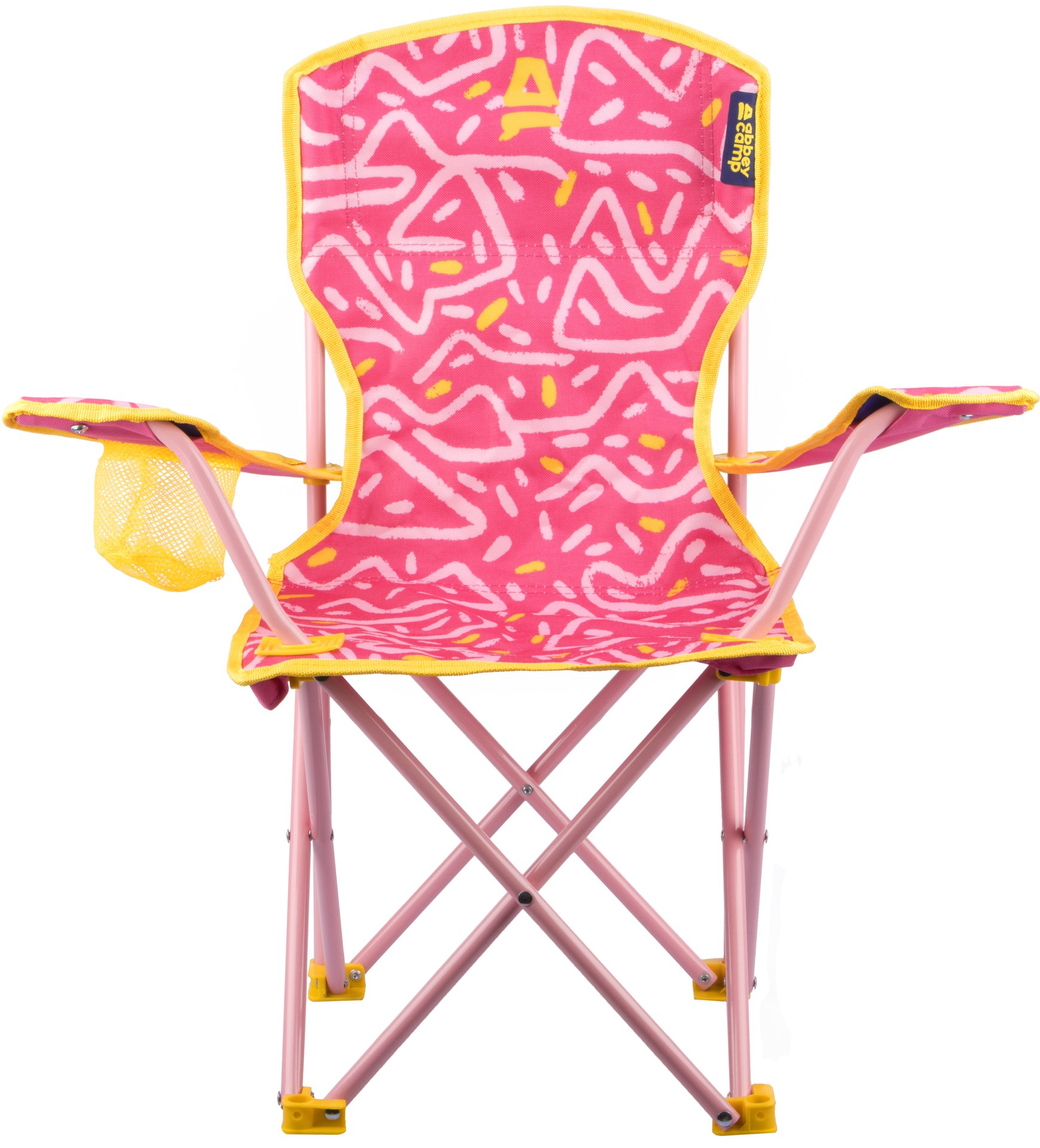 With the cheerful and colorful children’s folding chair Piombino from Abbey Camp, camping becomes an even bigger party. The sturdy and stable chair is ideal for children to sit with their parents at the campsite, in the garden or on the beach. The foldable chair is made of a strong steel frame covered with a polyester cloth which can be easily cleaned. The high chair has extra wide caps on the chair legs for extra stability and a handy cup holder. There is a safety lock in the frame to prevent the chair collapses during use, but once folded the chair is so compact it can be easily transported in its own polyester carrying bag. Have fun around the campfire with your own special chair!