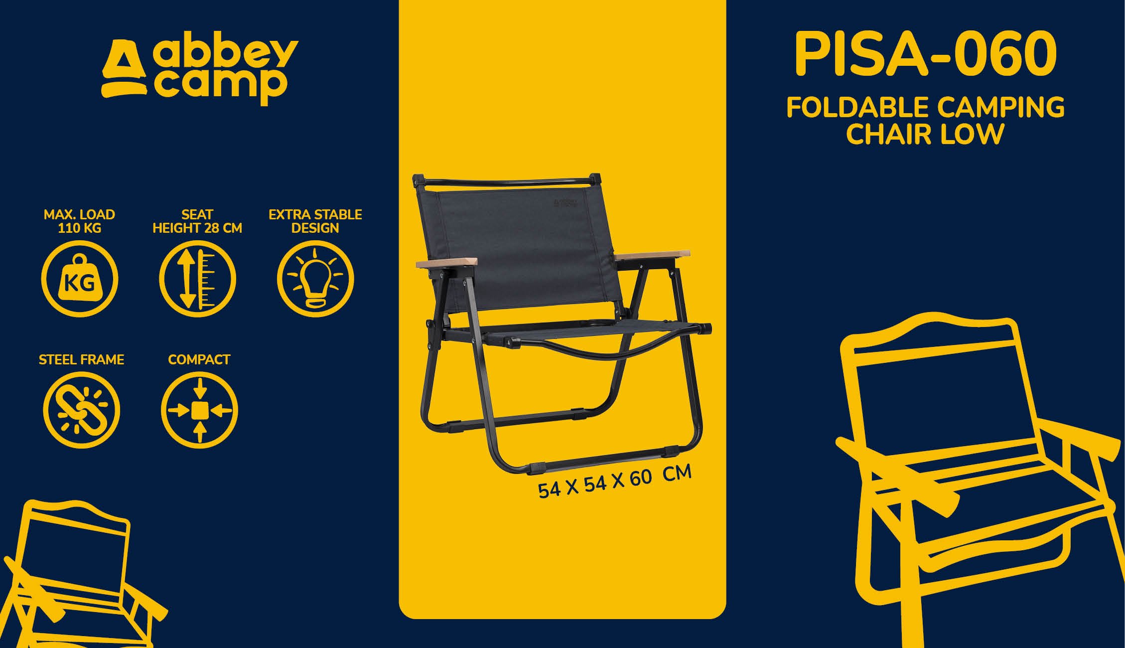 Looking for a sturdy, lightweight foldable chair for at the beach, camping or during a bike tour? The compact Abbey Camp Pisa-060 foldable chair is made of a strong steel frame with a reinforced comfortable polyester seating. The luxurious seating in combination with the wooden armrests give this beach chair a contemporary look.