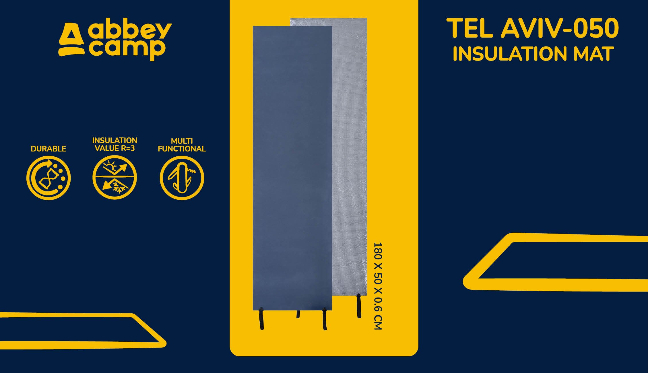 Increase your sleeping comfort with this roll-up insulation mat TELAVIV from Abbey Camp. By placing this foam mat under your sleeping mat or air mattress, you create an extra layer of insulation and keep cold and moisture out. The aluminum layer reflects body heat. Due to the high-quality materials, this sleeping mat is also water-repellent and extremely lightweight. The mat is easy to roll up and kept together with the handy elastic bands. Due to its compact pack size of 13 x 50 cm, the beach mat is easy to take anywhere. In addition, the insulation mat is also useful to sit on, to use as a picnic blanket or half sleeping mat.