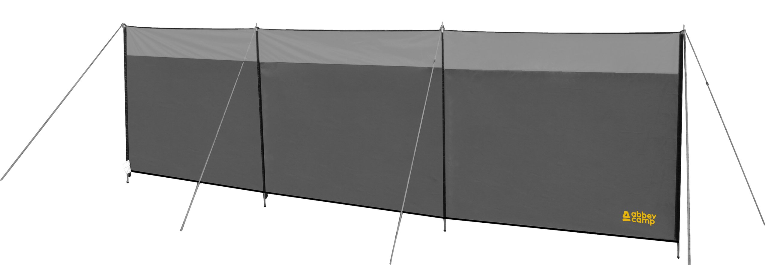 Do you need extra shelter at the campsite or on the beach? Maybe you want a little more privacy? Whatever your ultimate goal, this 5m Abbey Camp Chicago Windshield is a top product protecting you against wind and sun. Because the privacy screen consists of 3 sections, the angle can be adjusted to any situation. For extra stability, the awning is secured on both sides with guy ropes that are secured at the top. The polyester windbreak is lightweight, durable and easy to set up with the supplied poles, guy ropes and pegs. Supplied in a compact carrying case so you can take it with you wherever you go.