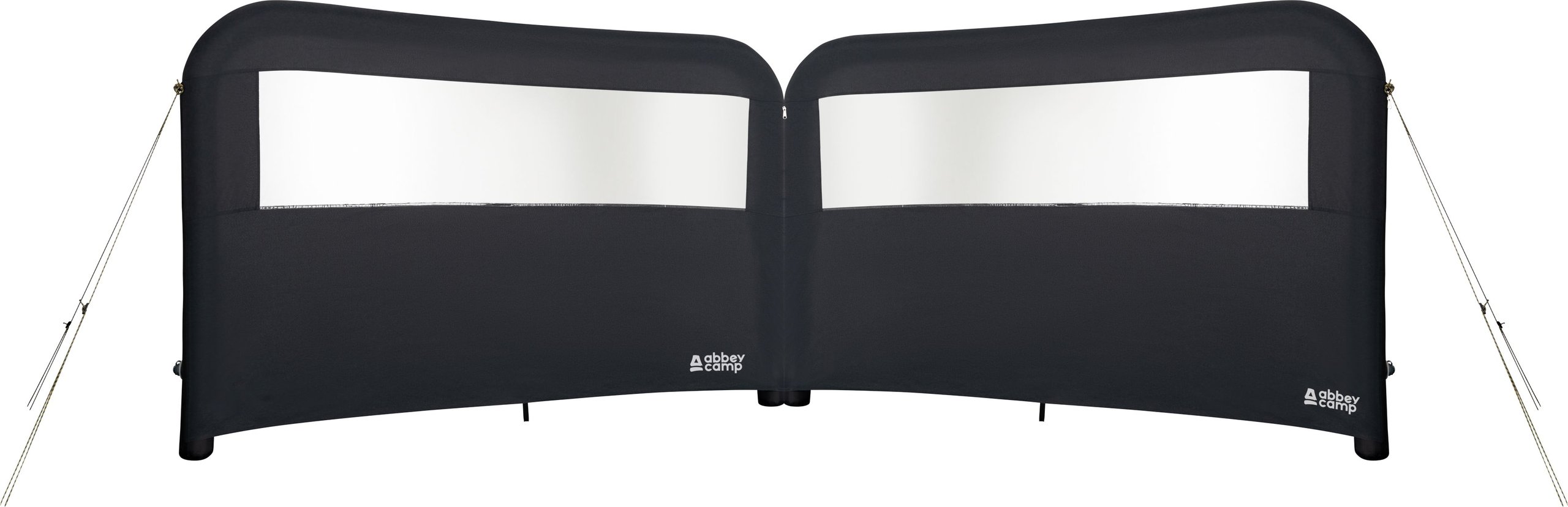 The privacy screen features strong zippers on both sides. The panels can be used individually, connected, or set up at an angle. The inflatable windscreen can be extended indefinitely with other windscreens from the Barrows Island series by Abbey Camp. Each panel is equipped with a clear window so you can still enjoy the view.