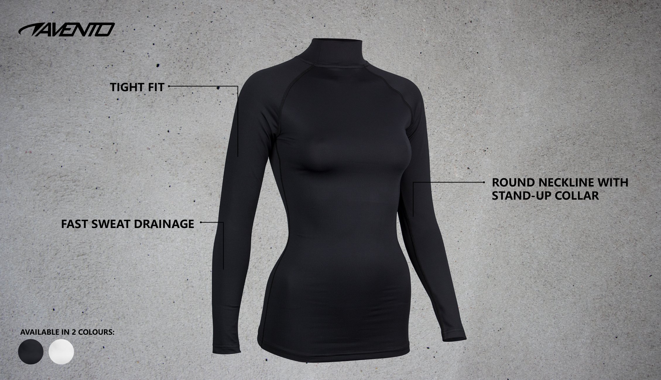 The Avento Base Layer shirt for women acts as a second skin. It keeps you warm when you exercise outside or during winter sports. The high-necked model ensures that you are not bothered by drafts, but also protects against chafing from zippers on other garments. The base layer shirt also makes putting on any heavier garments easier because it’s so smooth. Moreover, it feels incredibly comfortable.