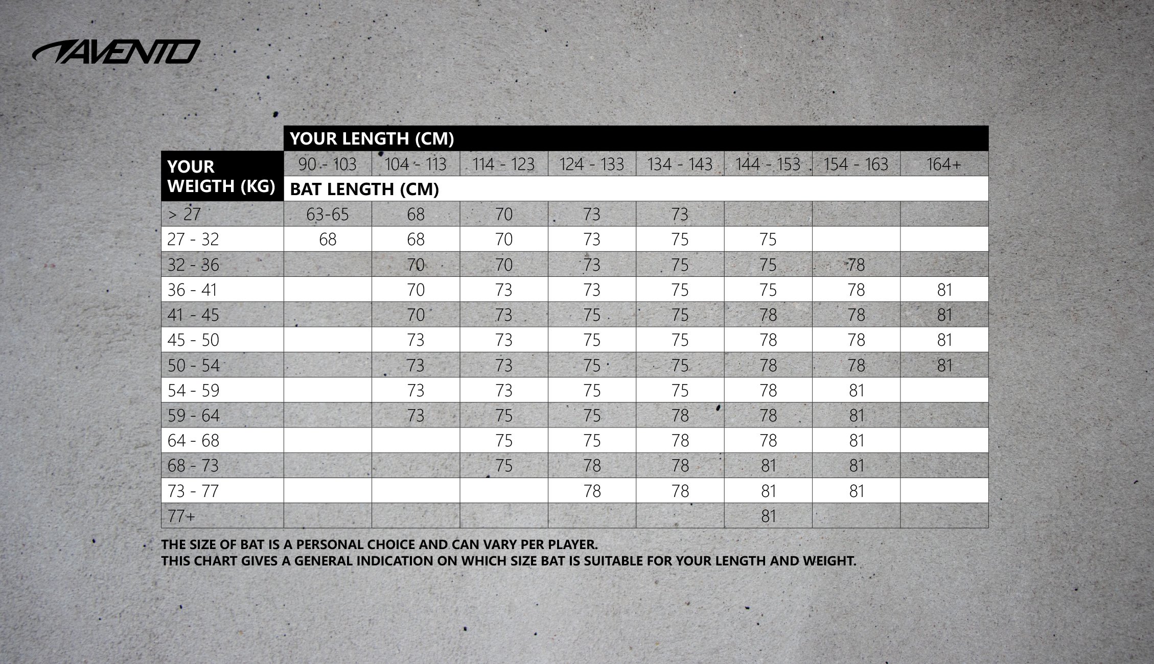 This Avento baseball bat is suitable for you when you are between 104 – 123 cm tall and weigh between 27 – 45 kilos.