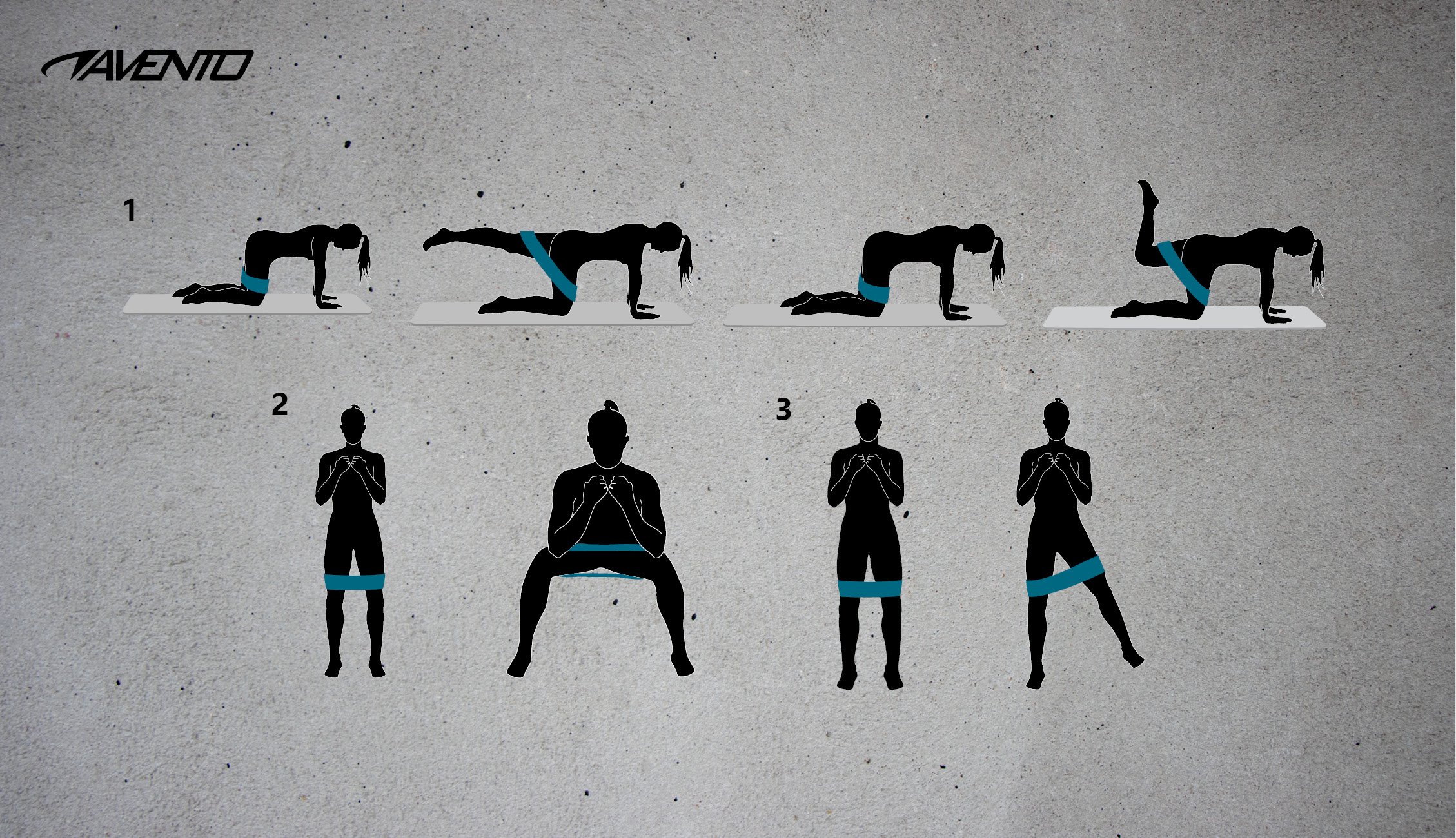 Train your legs, glutes and abs in different ways and levels with the Booty Trainer Fitness Resistance Band Set. With this soft elastic resistance band set from Avento you can easily bring the gym into your home. The resistance bands come in different resistance levels, each with its own pulling force ranging between 27 and 54 kilos. These fitness bands have a non-slip layer on the inside, so they do not slip or slide down during training. Comfortable and efficient while doing squats, lunges or jumps. The bands are wider than average (8cm), making them comfortable and suitable for all kinds of exercises. The bands are mainly used for training the legs and booty; however, the constant tension on the body ensures that the core and other muscles are also effectively trained. With this set you can complete your workout and improve your balance, coordination and strength.