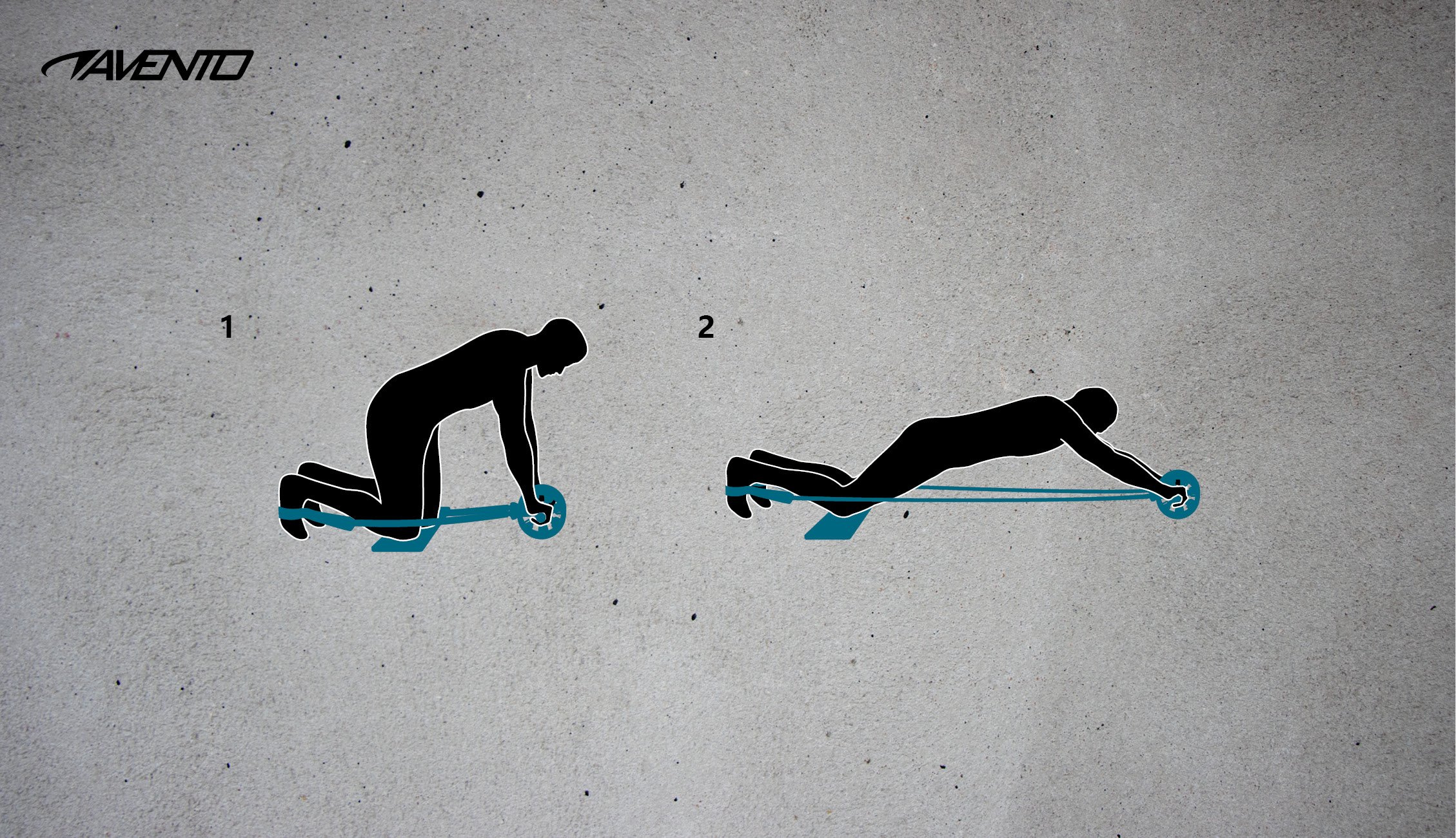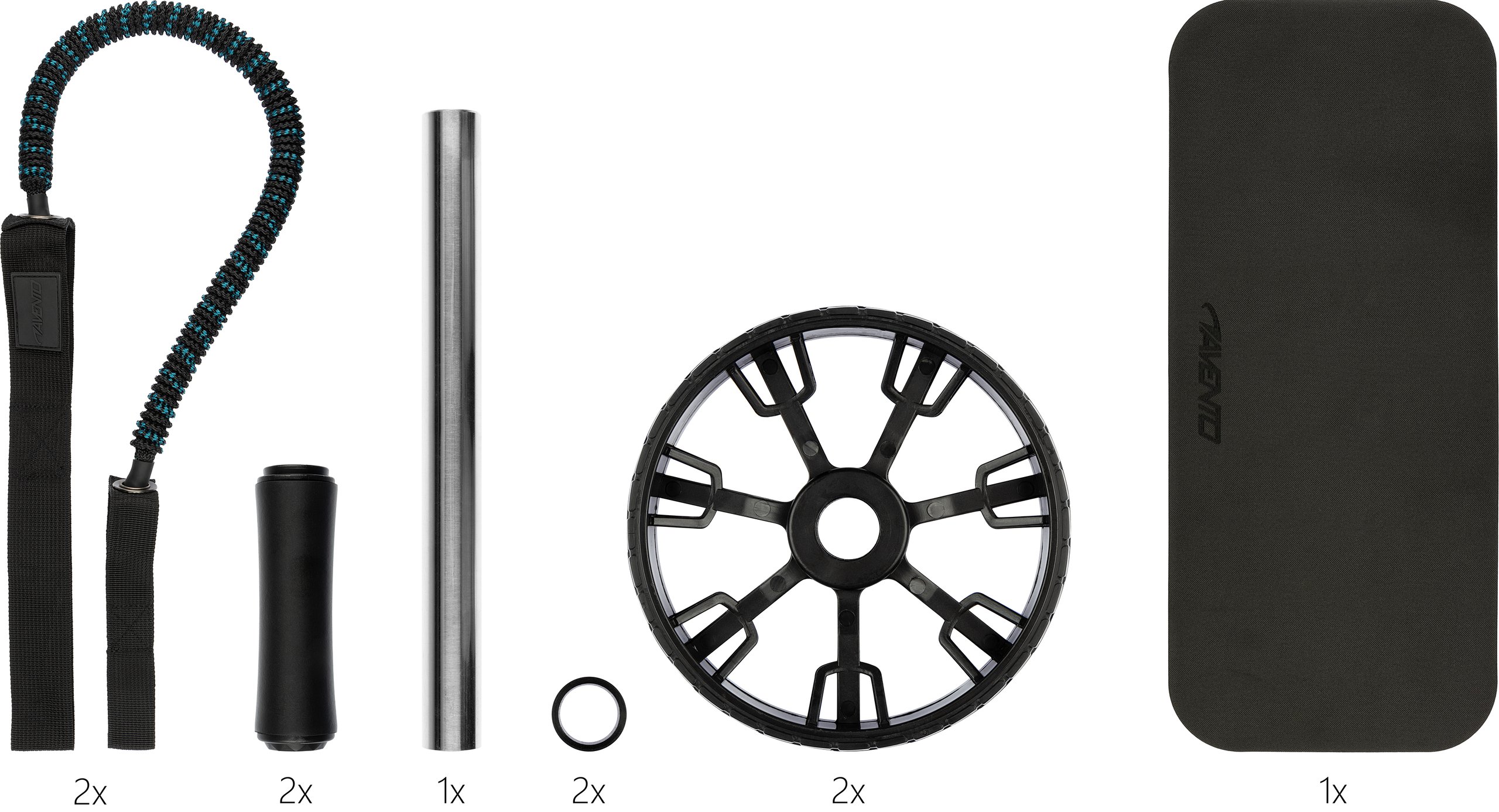 Get ready for a solid ab workout! With the Avento Heavy Duty Ab Roller with resistance bands you can easily train your abdominal, arm and chest muscles without losing your balance. The handy system with resistance bands in combination with the double abdominal muscle wheel ensures that you can perform various exercises for the abdominal muscles in a steady and controlled manner. Thanks to the straps, you will experience more balance and you’re more able to perform the exercise correctly. In this way, your training can vary from less heavy exercises to a high intensity ab workout. In this way you will not only train the abdominal muscles simply and effectively, but also the chest, shoulders, legs and back muscles will be activated. The abdominal roller set consists of a sturdy double fitness wheel with a heavy duty steel tube with plastic non-slip handles. The profile on the tires of the wheel provides good grip and thanks to the comfortable grips the wrist is well supported. The TPE resistance bands have a soft textile cover, so you can use them smoothly and they won’t get in your way. The ends of the resistance bands straps have PP loops for the ankle/foot shoe. You can easily hook your feet into the loops and attach them on the other side of the wheel as well. There is also a TPE fitness mat with this abdominal muscle trainer set, so that your knees will be supported and won’t start to hurt during training. This set is ideal to add to your own home gym, so you can do any training from your own home! In addition, you can easily take the set with you everywhere and keep your body super fit at all times!