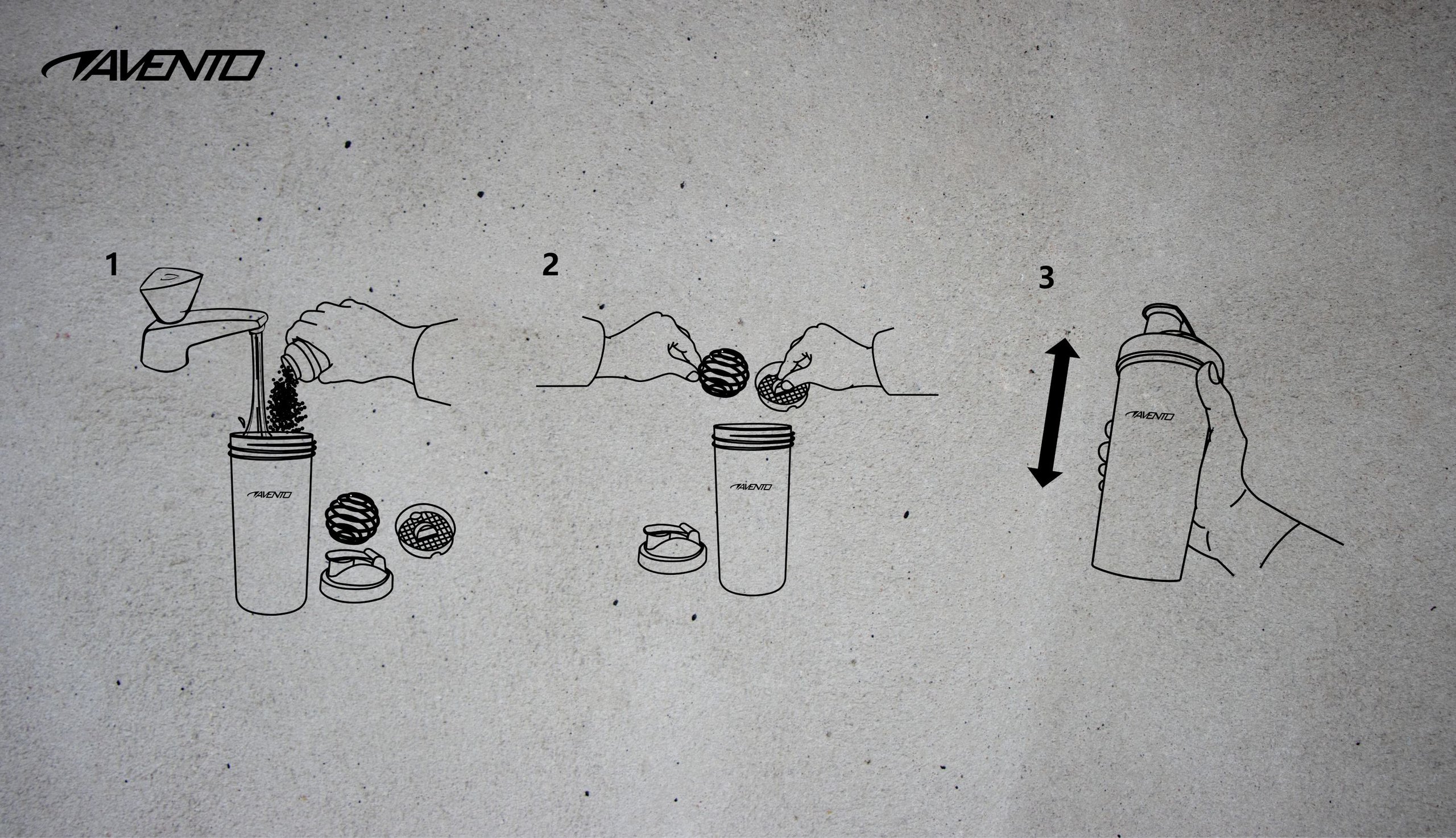 Are you a fan of diet shakes, liquid sports nutrition or smoothies? Then this Avento shake bidon with screw cap and drinking spout with cap is ideal for you. The cup has a ball to make sure your drink is well shaken. Contents: 1 litres.