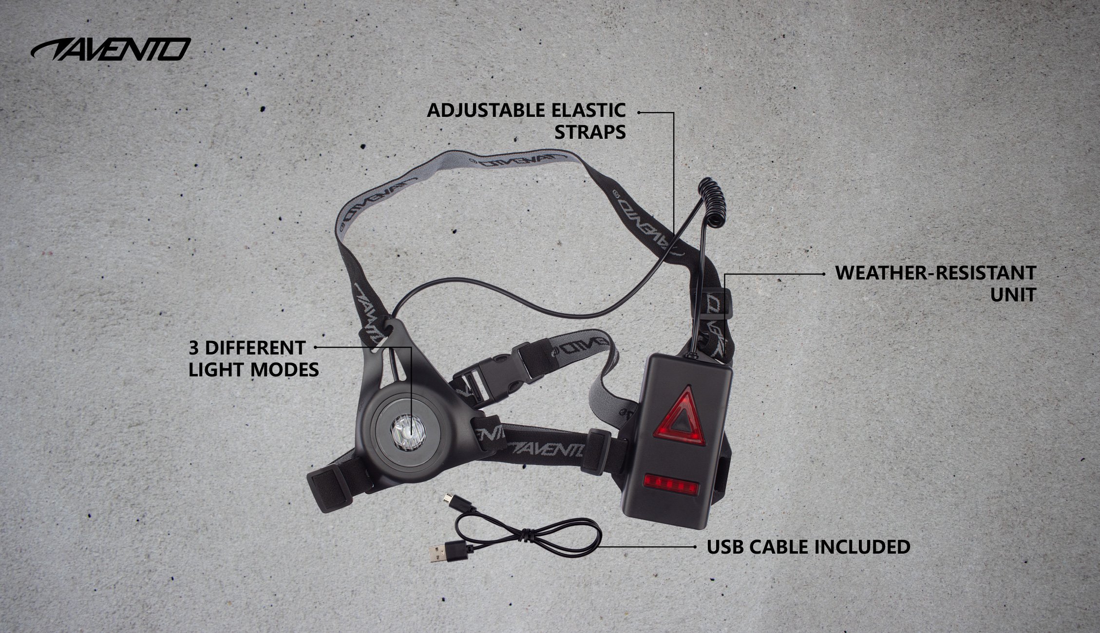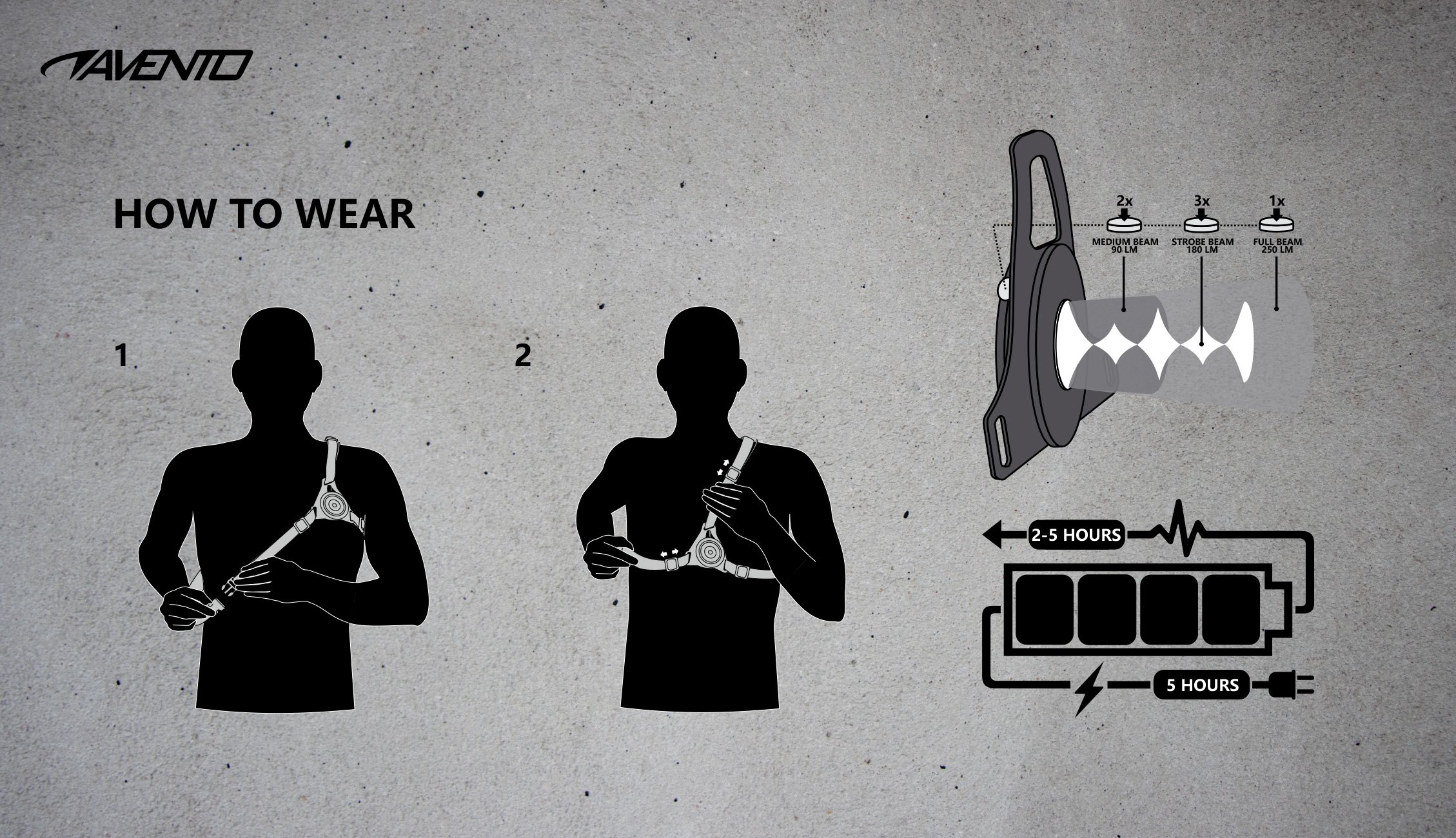 Thanks to the easily-adjustable elastic straps, the Avento LED harness is easy to put on.