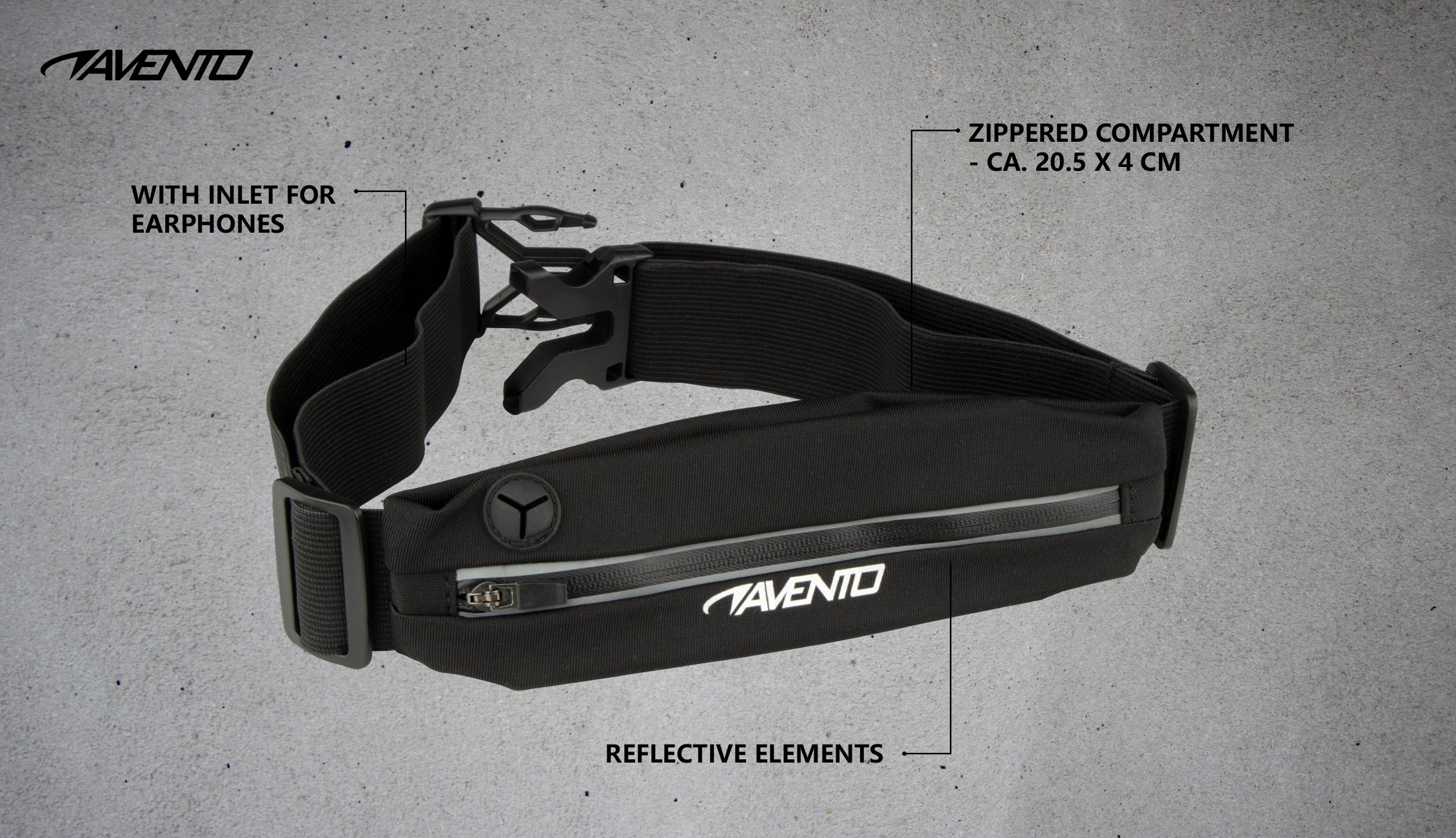 Do you want to have your hands free when exercising? Or maybe you are looking for a discreet bag to keep the essential things close to you while travelling? The Avento waist belt with elastic Lycra bag is a perfect solution in both cases. The belt is comfortable to wear, adjustable and has a lightweight quick closure. Ideal for running, inline skating or walking!