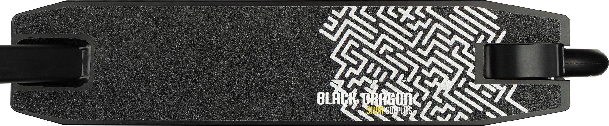 Stunt like a boss on your Black Dragon Neo Maze stunt scooter! This shiny neochrome Black Dragon stunt scooter has an extra strong rectangular aluminum and heavy-duty steel frame with a triple handlebar clamp. Perfect for doing tricks at the skate park. The 85A PU wheels have a spoked wheel core and ABEC 7 carbon bearings. Which makes this scooter lightweight and makes you super-fast and maneuverable. The scooter is made to land the nicest tricks and jumps and can take a beating. You have a good grip thanks to the rubber handles with extra impact protection at the ends and there is a steel flex foot brake on the rear wheel. Finally, the scooter has a shiny neochrome design with a cool look, you are guaranteed to steal the show with this dope stunt scooter. The maximum load is 100 kg and the scooter comes with 2 Allen keys for the handlebar clamp.