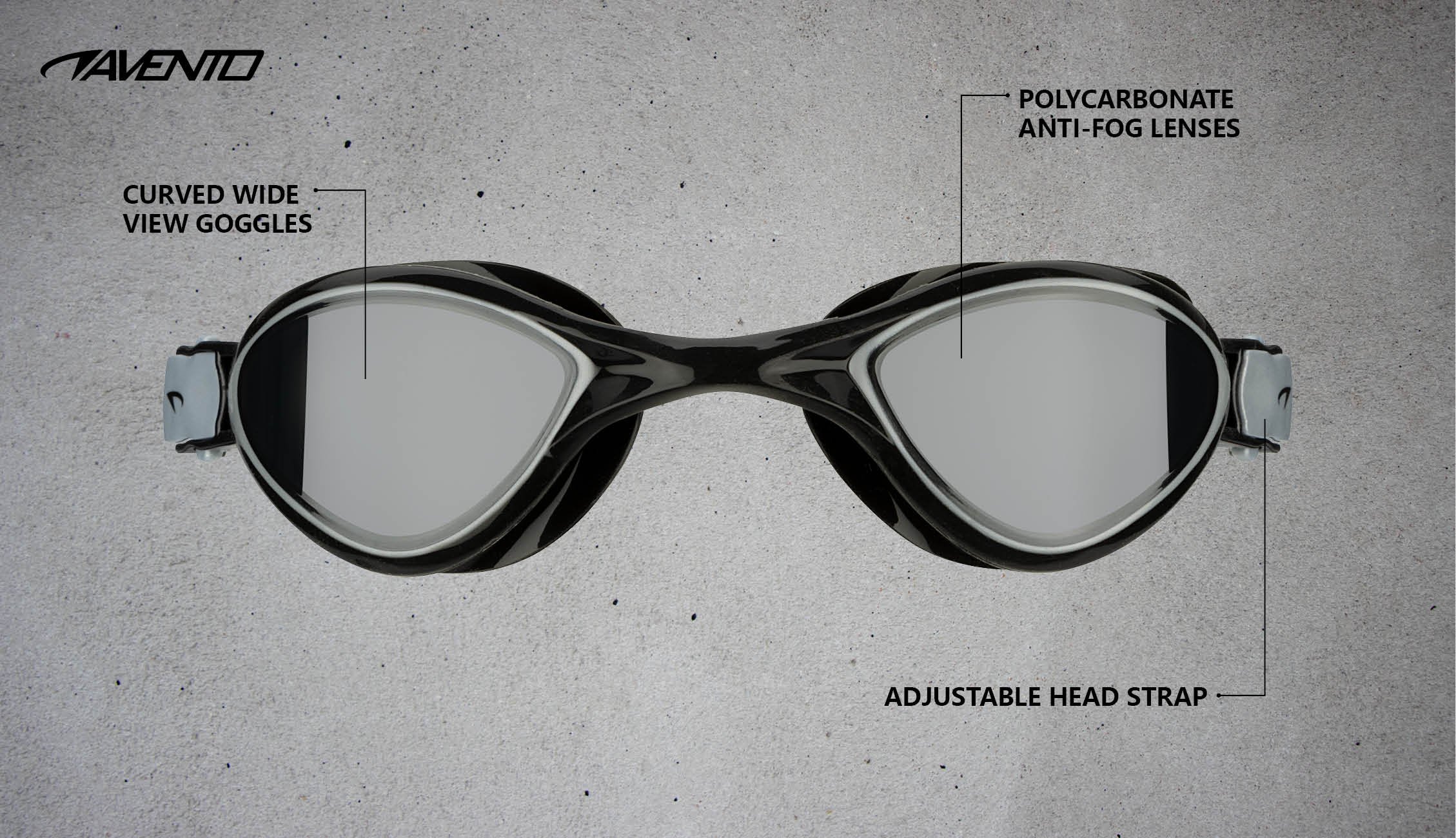 The wide curved lenses of the Avento Flex chlorine goggles provide an unparalleled improvement in front and side vision. Equipped with UV-protection and anti-fog lenses that prevent moisture on the lenses and ensure longer ‘fog-free’ swimming.