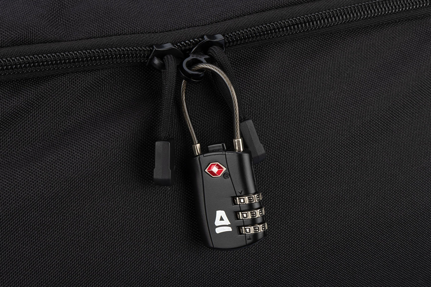 Brukervennlig og laget med smart reise i tankene. Bagen brettes kompakt sammen i sin egen innerlomme. Bær den som en duffelbag med den justerbare skulderremmen, eller bruk de solide håndtakene på både kort- og langsiden. Skulderremmen kan pakkes bort i en egen glidelåslomme. Hovedrommet har en robust glidelås og kan sikres med en reiselås (ikke inkludert – tips: Abbey Camp TSA-lås). Flybagen har også en integrert navnelappholder.