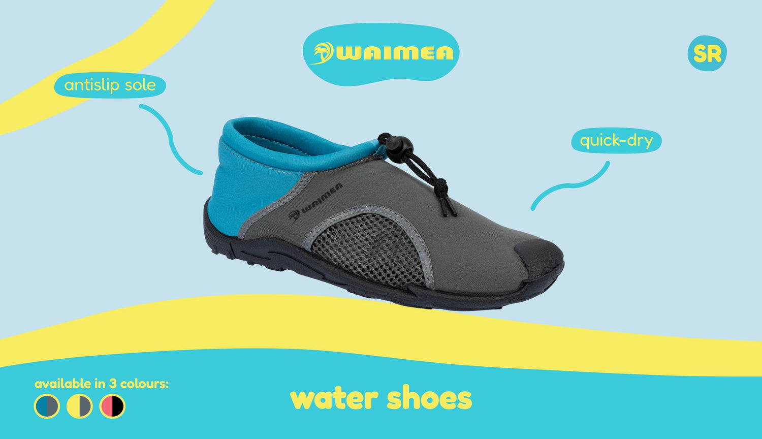 Med Waimea Skip vannsko er du klar for neste tur til stranden eller bassenget. Overdelen i neopren/nett føles myk og smidig, tørker raskt og lar vannet slippe ut lett. Den justerbare snorlåsen foran sikrer perfekt passform.