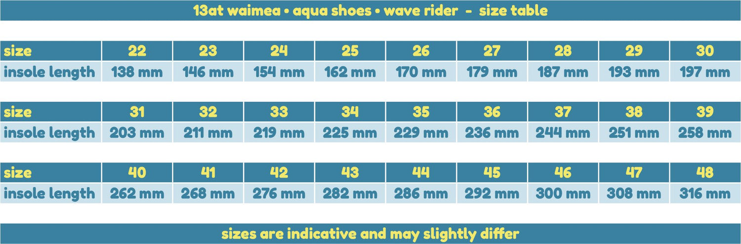 Waimea Wave Rider vannsko er det perfekte valget, med en solid gummisåle som ikke sklir. Disse vannskoene gir utmerket grep og beskyttelse, enten du svømmer, snorkler, er på båt eller bare går langs stranden. De finnes i størrelser fra de minste føttene til større størrelser.