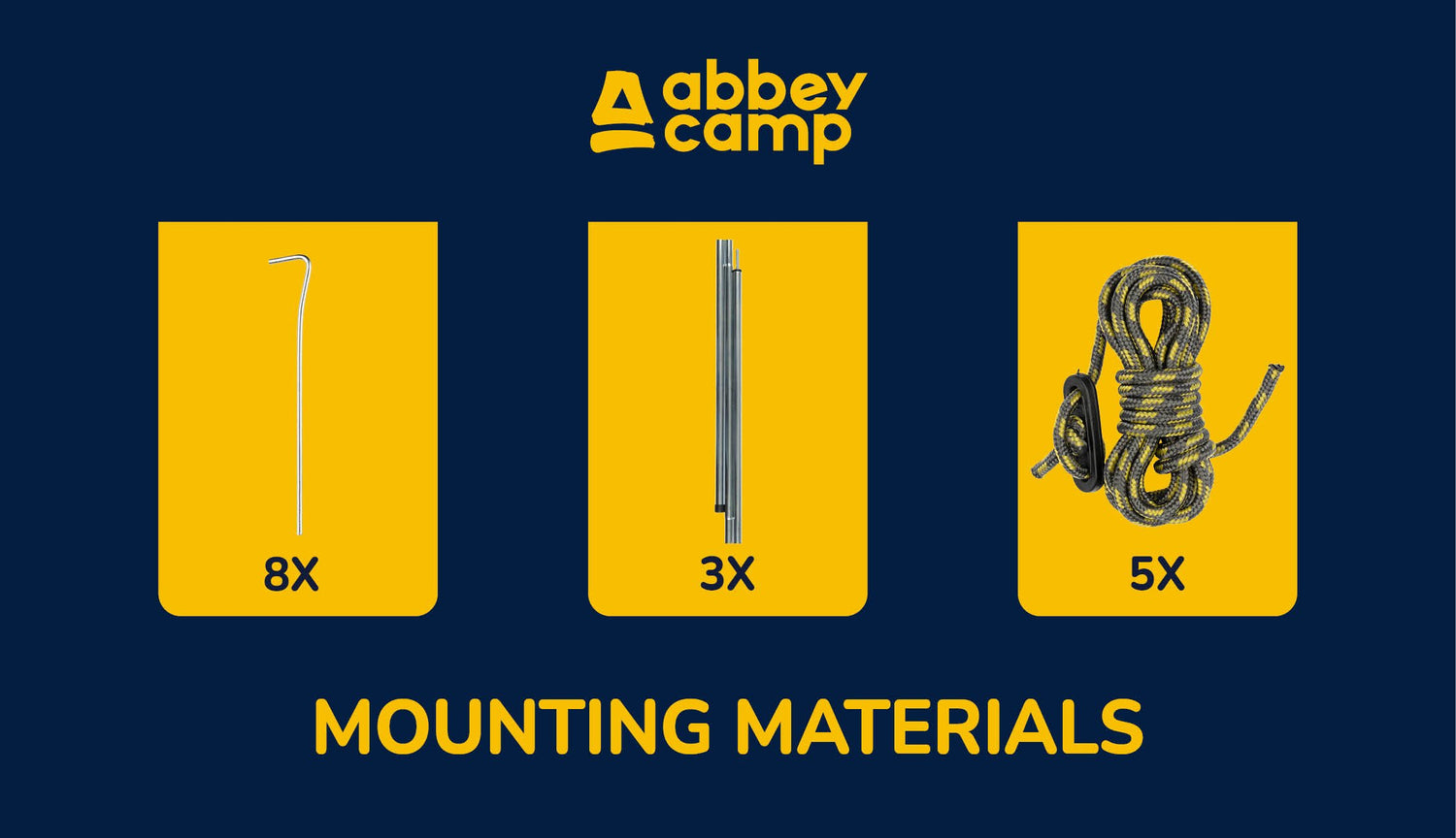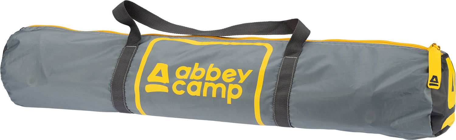 Trenger du ekstra ly på campingplassen eller på stranden? Kanskje ønsker du litt mer privatliv? Uansett hva ditt endelige mål er, er denne 3 m Abbey Camp Wellington vindskjermen et førsteklasses produkt som beskytter deg mot vind og sol. Fordi privatlivsskjermen består av 2 seksjoner, kan vinkelen justeres til enhver situasjon. For ekstra stabilitet er markisen sikret på begge sider med barduner som festes øverst. Polyester vindskjermen er lett, slitesterk og enkel å sette opp med de medfølgende stengene, bardunene og plugger. Leveres i en kompakt bæreveske slik at du kan ta den med deg hvor enn du går.