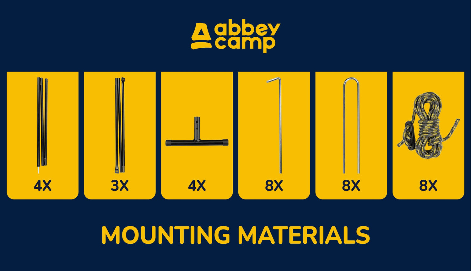 For enda mer stabilitet er vindskjermen forankret til bena med U-formede plugger og sikret på begge sider med barduner.