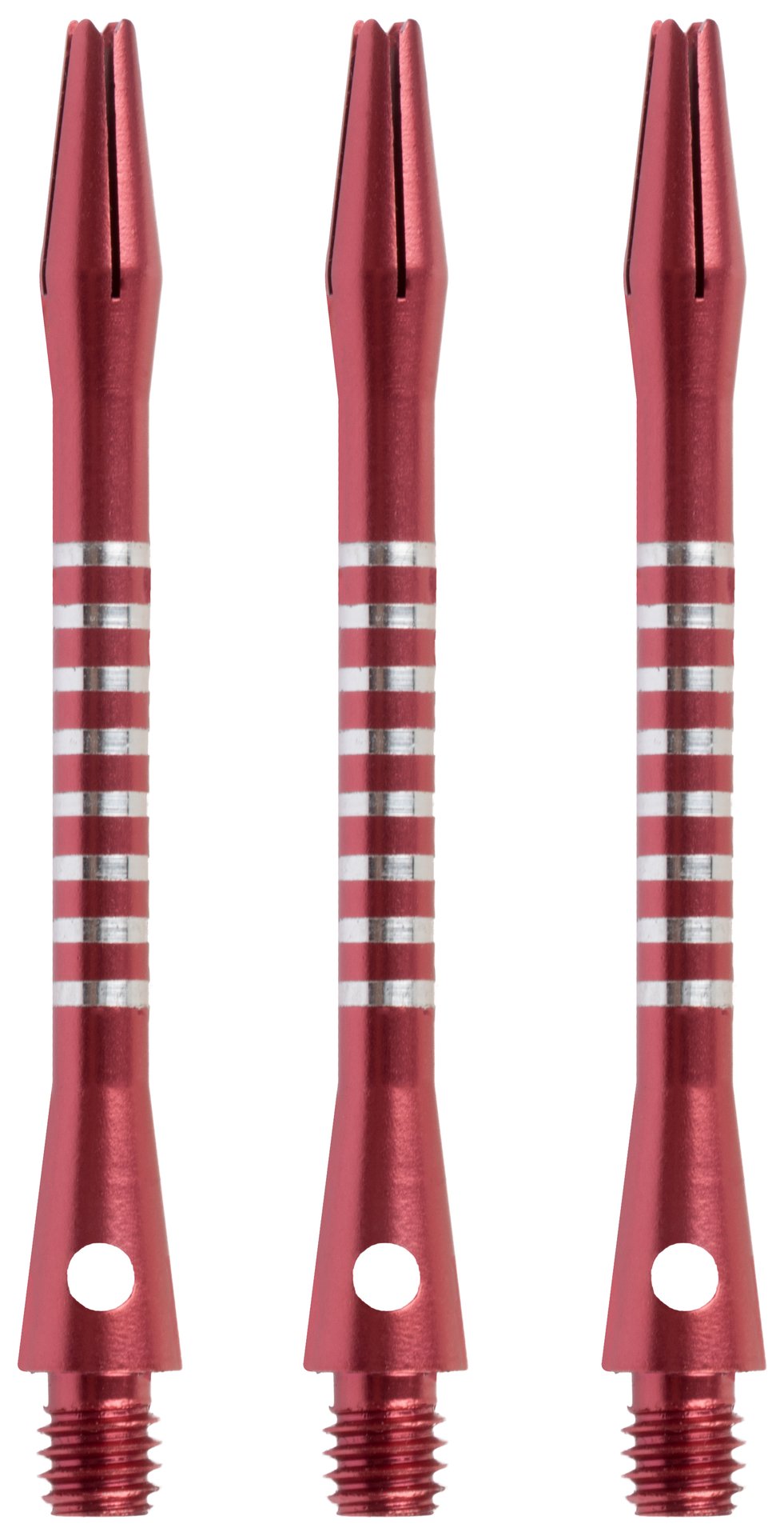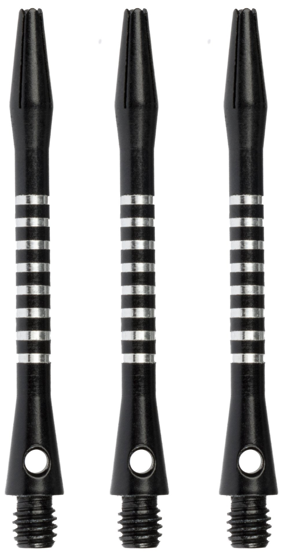 Aluminiums dartskaftene har et spesielt hull som gjør at du kan skru skaftet sikkert fast på dartens tønne.