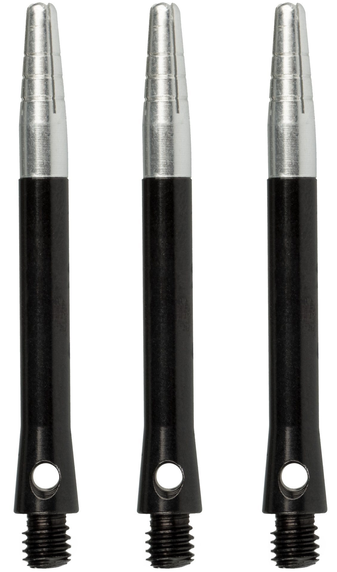 Aluminiumskaftene til pilene har et spesielt hull som gjør at du kan skru skaftet sikkert fast på pilens tønne.