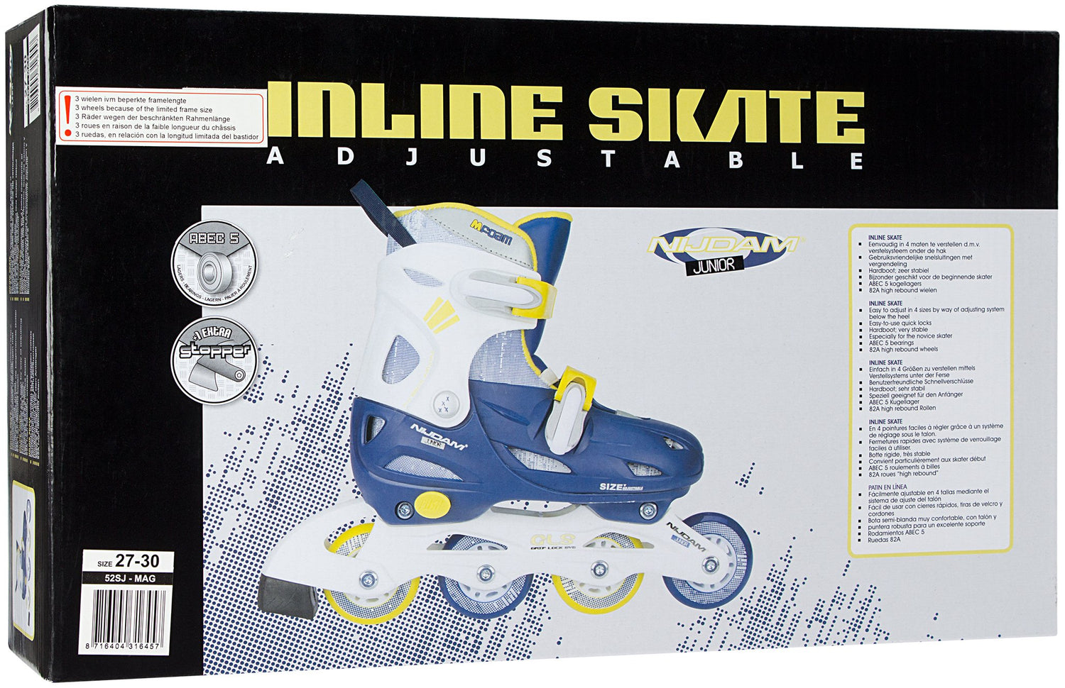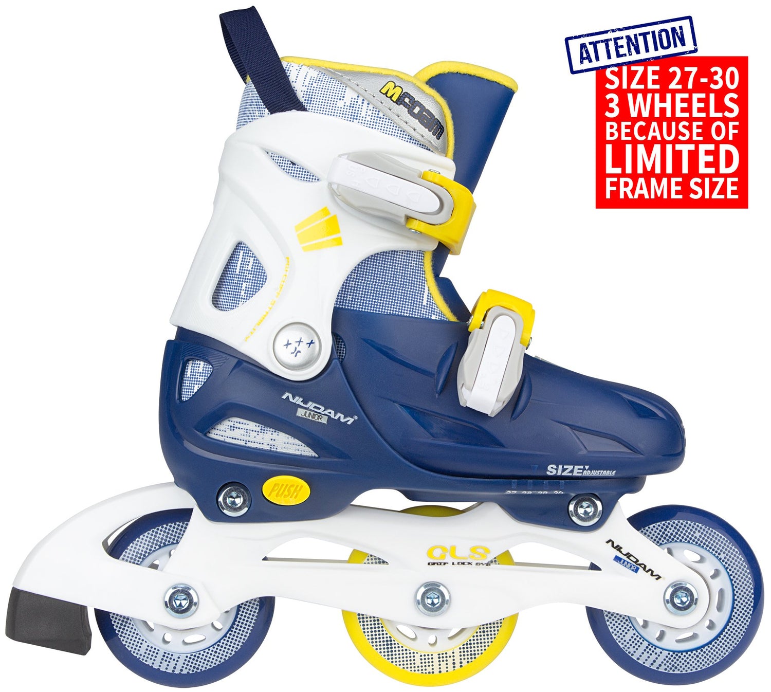 • størrelse 27/30 med 3 hjul, andre størrelser med 4 hjul