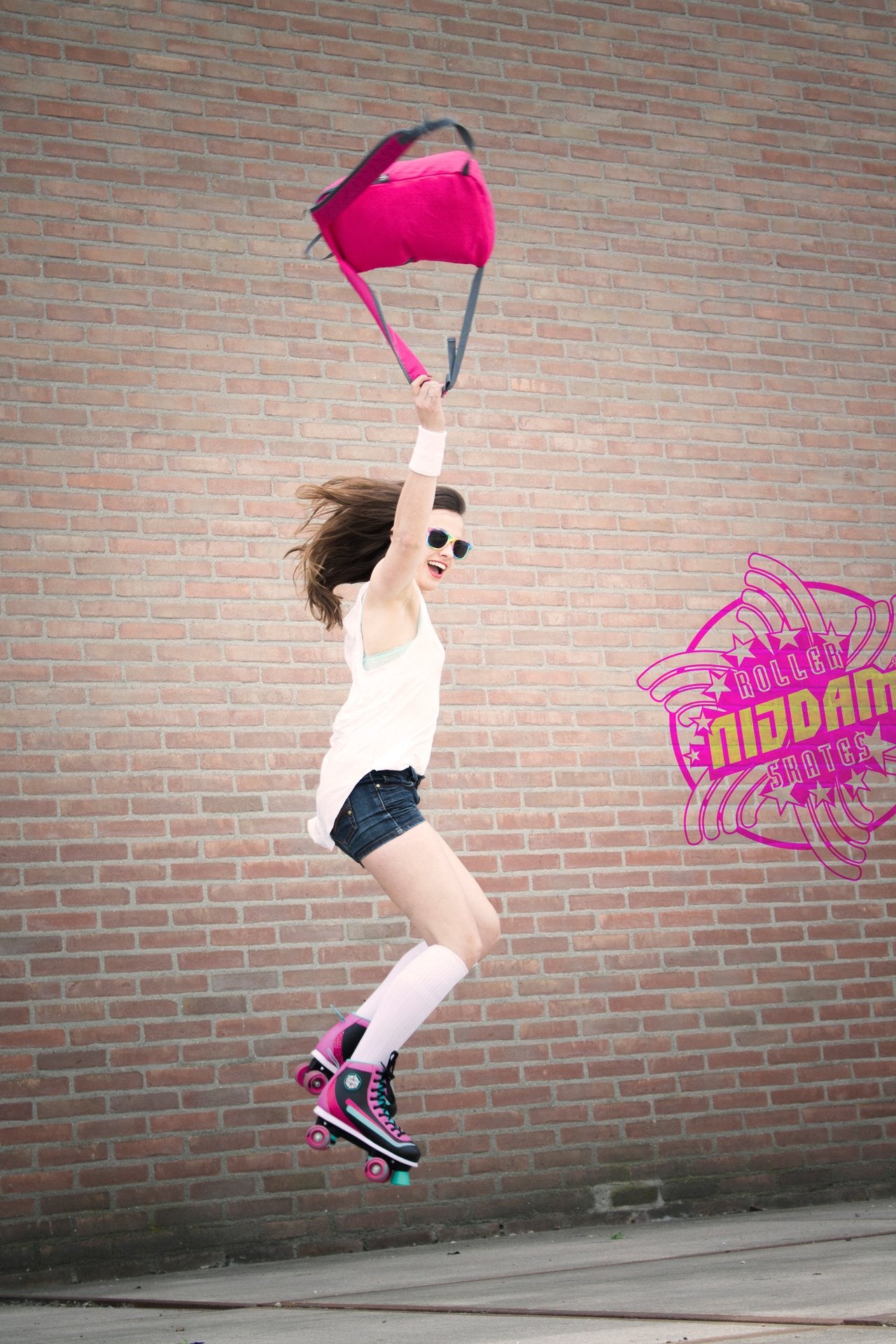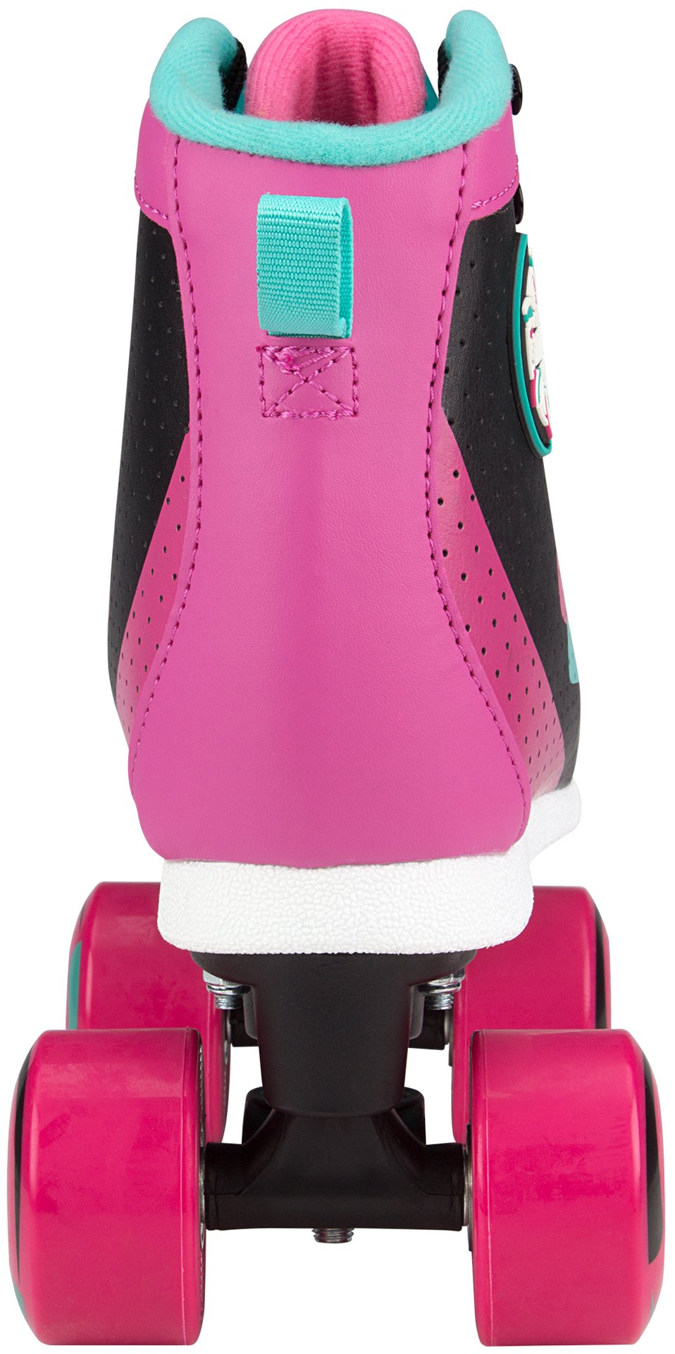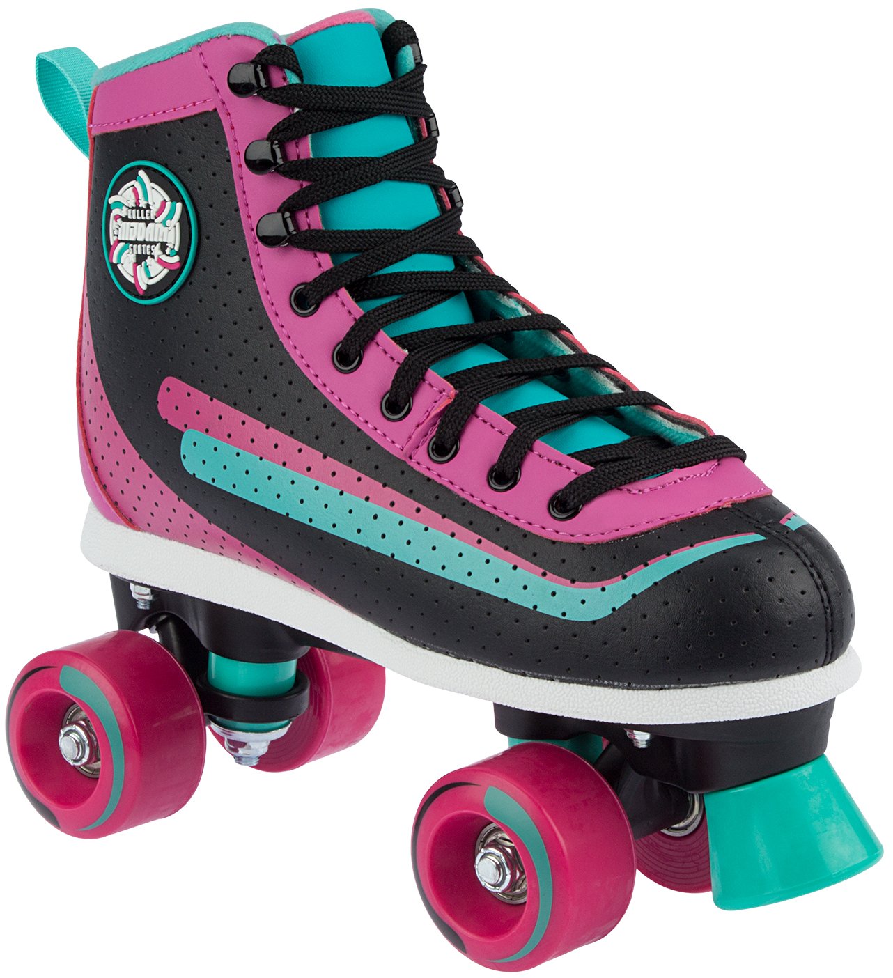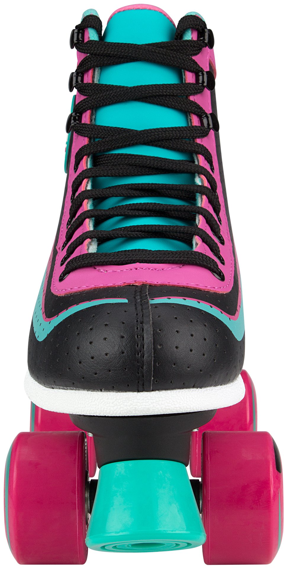 • iøynefallende retro rulleskøyter laget av PU-lær med snøring
