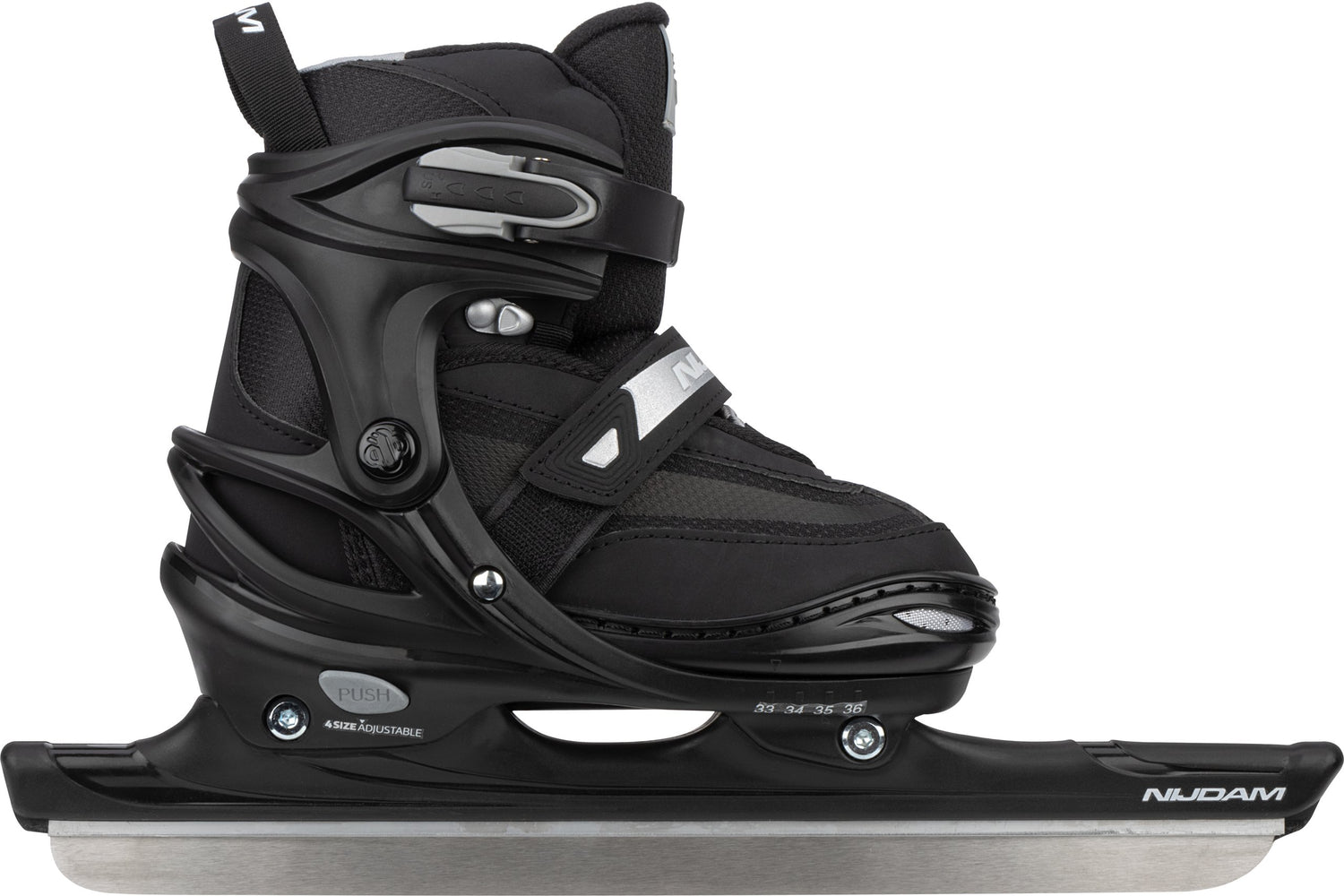 Hvem vil du utfordre til kappløp på isen? Med de justerbare Nijdam Rink Raven skøytene glir du lett over isen! Disse halvmyke støvleskøytene gir god stabilitet og støtte samtidig som de tilbyr stor komfort for skøyting. Perfekt for en runde på banen eller en rolig tur på naturlig is.