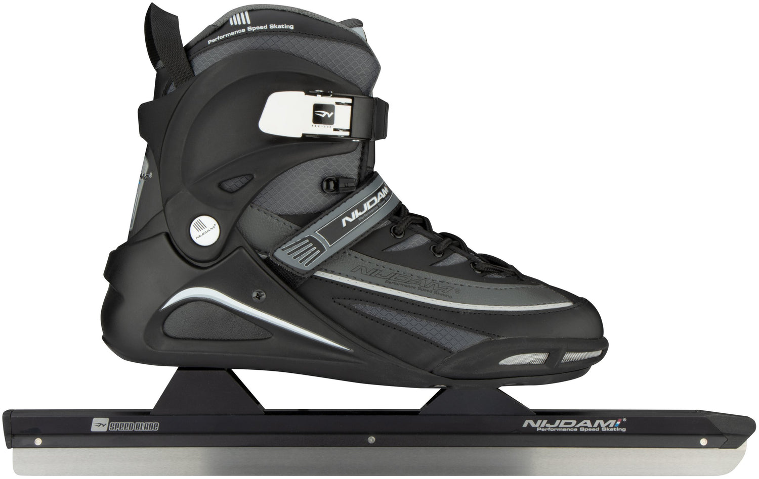 Disse har høye klinger. Med høye klinger står du noen centimeter høyere på isen enn med lave klinger. Høye klinger egner seg godt for høy fart og hindrer at skoen berører isen i en sving. Perfekt for en rask runde på skøytebanen eller en kjapp tur på naturlig is. Disse skøytene har høyt skaft, som gir litt mer ankelstøtte.