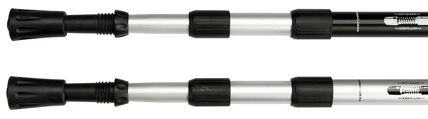 Denne vandrestaven er laget av lett, slitesterkt aluminium og har et integrert støtdempingssystem for å redusere belastningen på leddene dine. Det er viktig at vandrestaver har riktig lengde, derfor har denne vandrestaven et teleskopisk låsesystem som gjør den justerbar fra 63 til 135 cm. For optimal støtte bør underarmen være bøyd i en rett vinkel.
