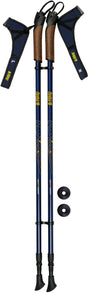 Håndtakene er anatomisk formet og laget av gummi for et ekstra behagelig grep. De polstrede, justerbare neoprenreimene med borrelås er uunnværlige under gange; takket være disse reimene kan du slippe stavene og ta dem opp igjen uten at de faller. Med spissen på staven får du godt feste og kan skyve deg framover. De utskiftbare tuppene gir sklisikring og godt grep på harde underlag.