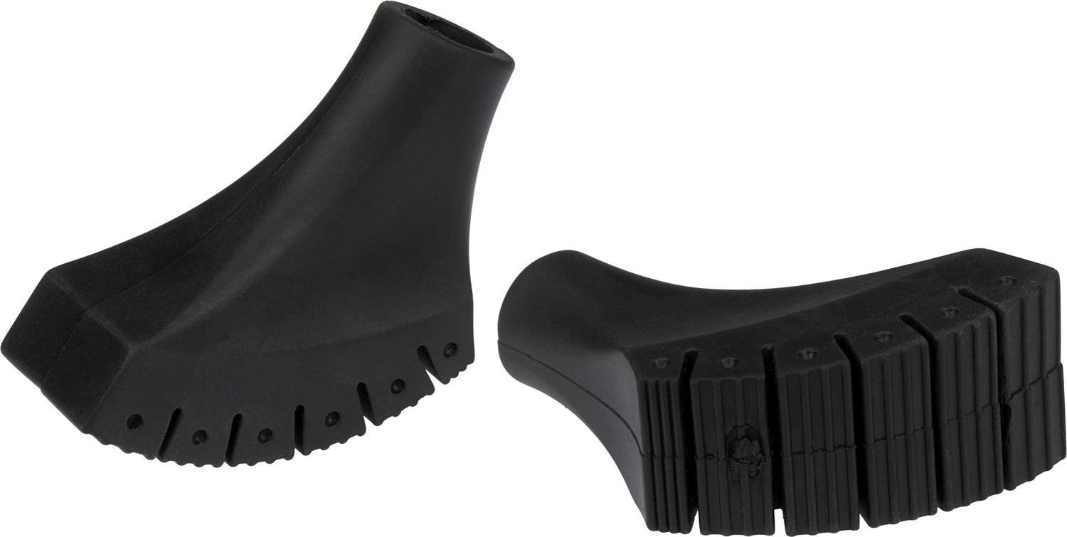 Disse skoformede gummituppene er laget for terreng utenfor vei. Takket være formen og mønsteret under, er de ideelle for mykere underlag, som skogsstier. Tuppene er laget av TPR (termoplastisk gummi) og har en stålarmering inni. Dette hindrer stavene i å trenge gjennom tuppene, noe som gjør at de varer lenger.