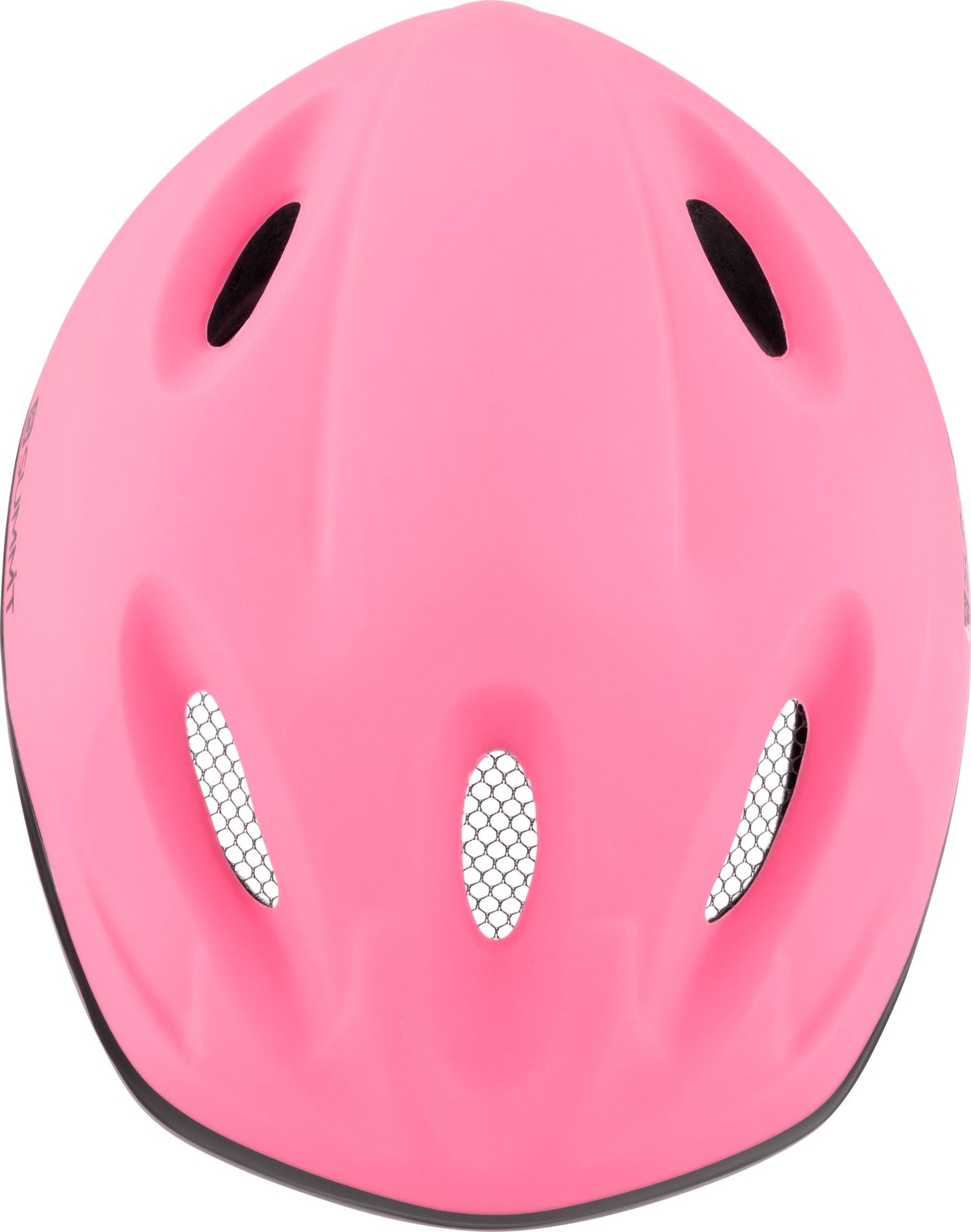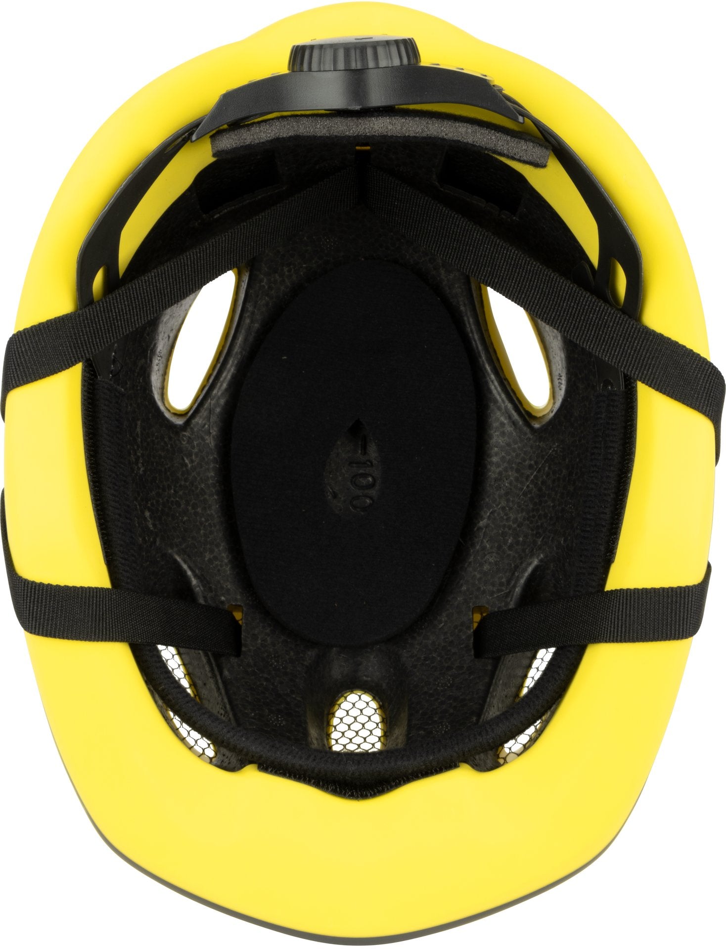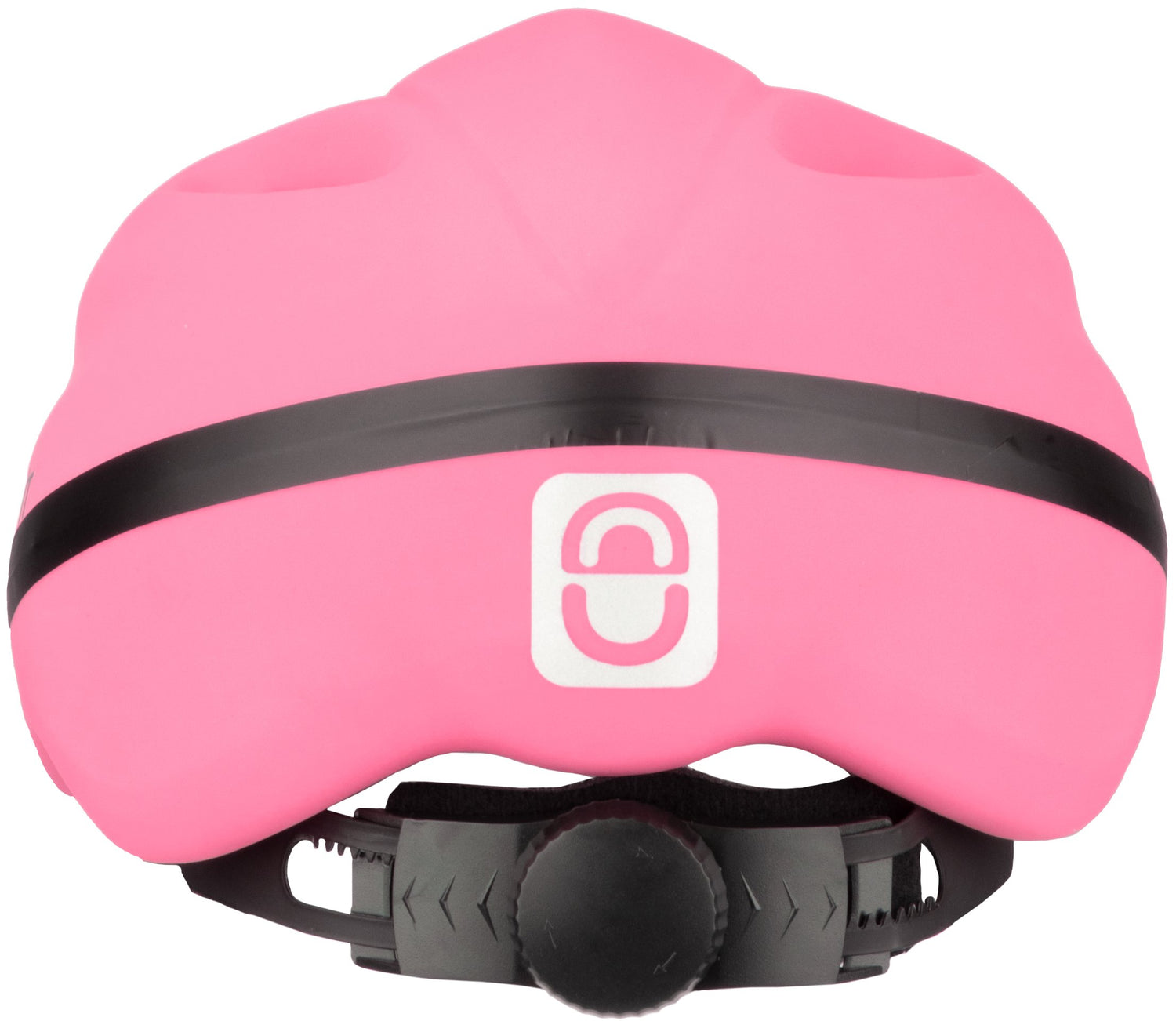 Kan justeres fra 52 til 56 cm ved hjelp av en justeringsskive. Ventilasjonsåpningene foran på sikkerhetshjelmen er dekket med nett for å hindre fluer og insekter i å komme inn. På baksiden av sykkelhjelmen sitter en refleks for ekstra synlighet. Hakestroppen kan justeres i lengde for optimal passform.